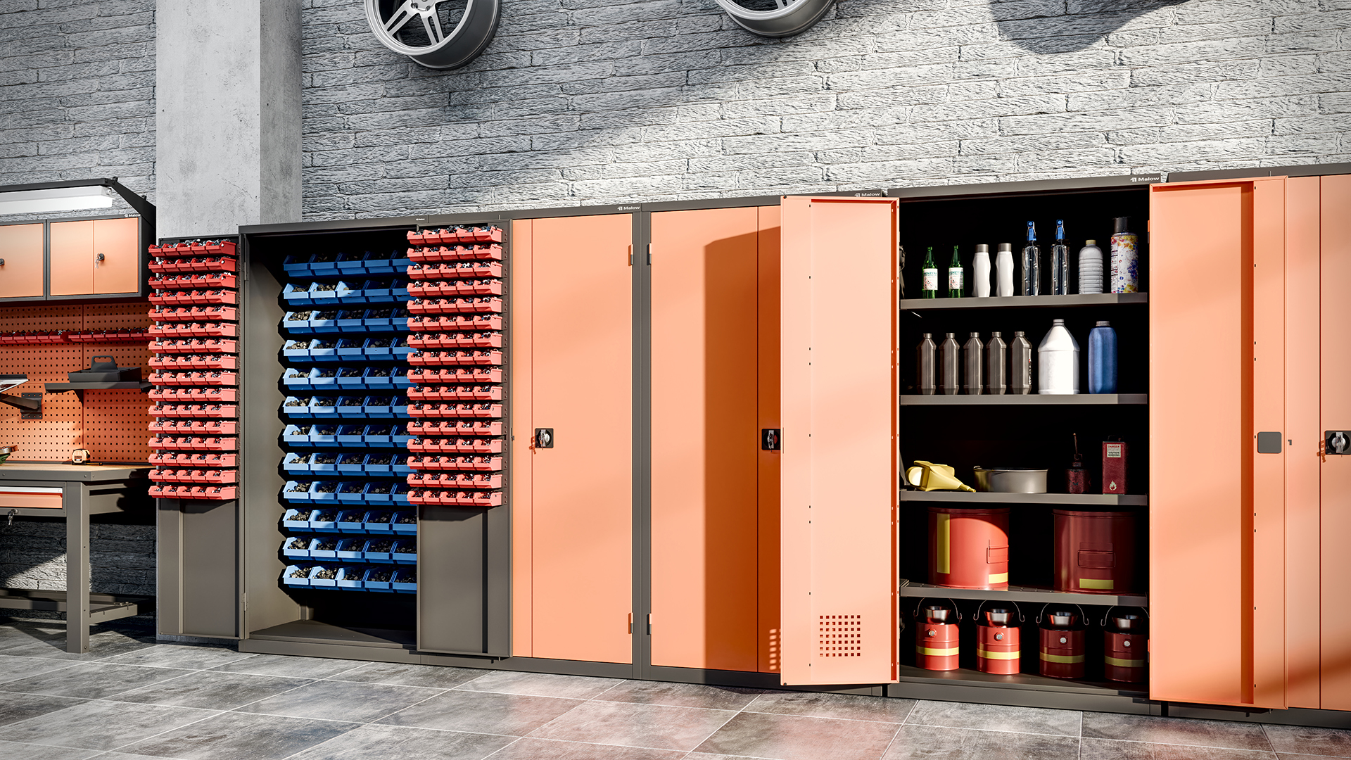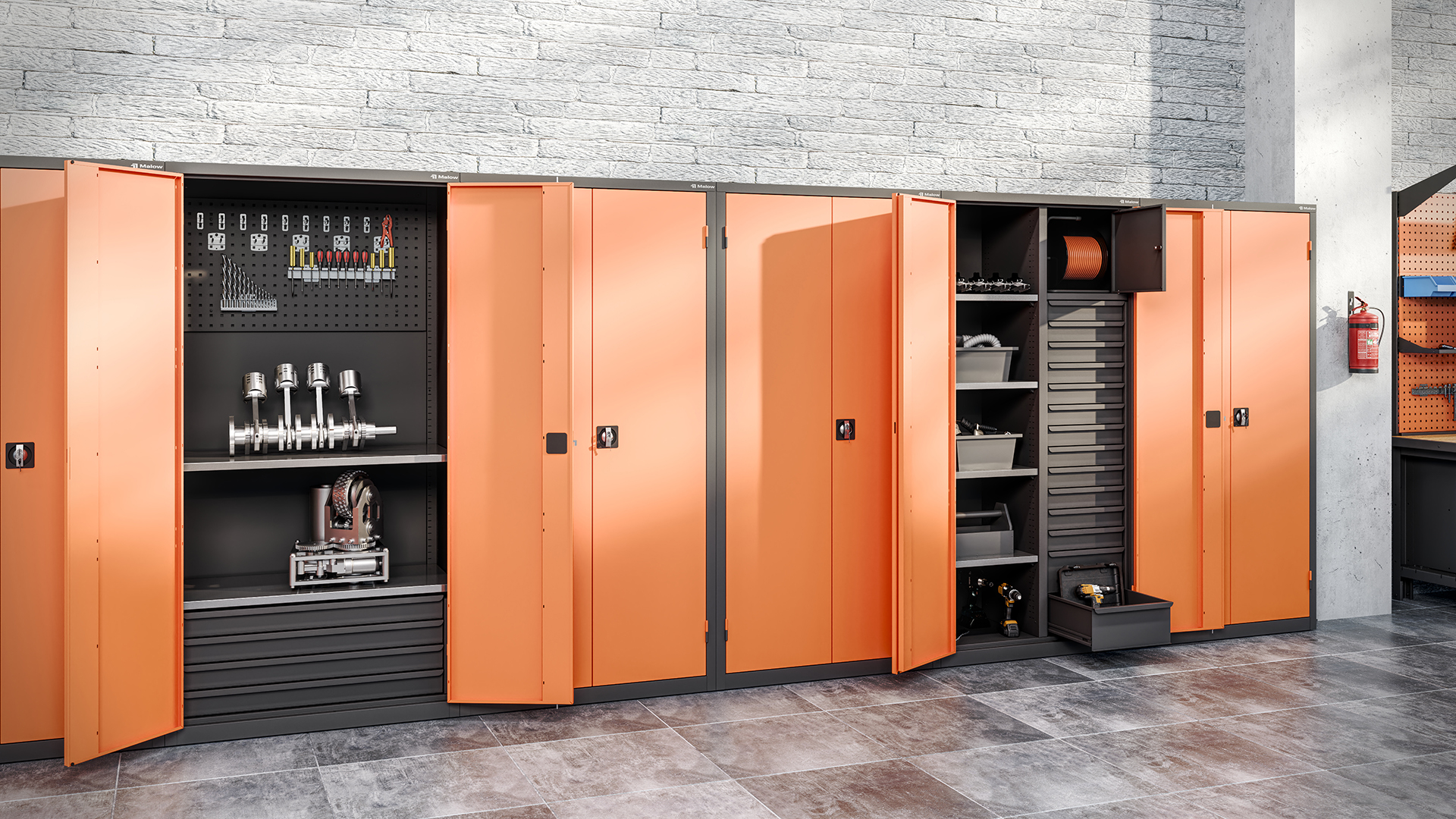 - MSW narzędziowe: Specjalne wersje ze ścianką narzędziową, do której można mocować akcesoria. Występują w dwóch wersjach wyposażenia, z 2 półkami i 2 szufladami lub z 4 szufladami i zestawem uchwytów.