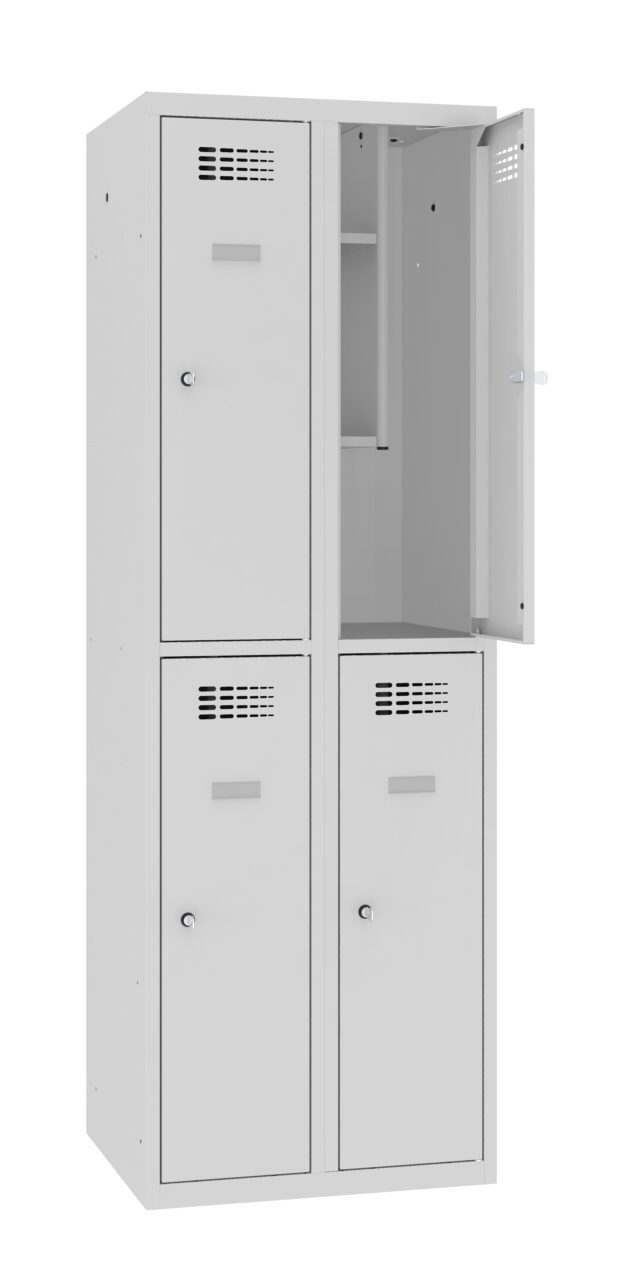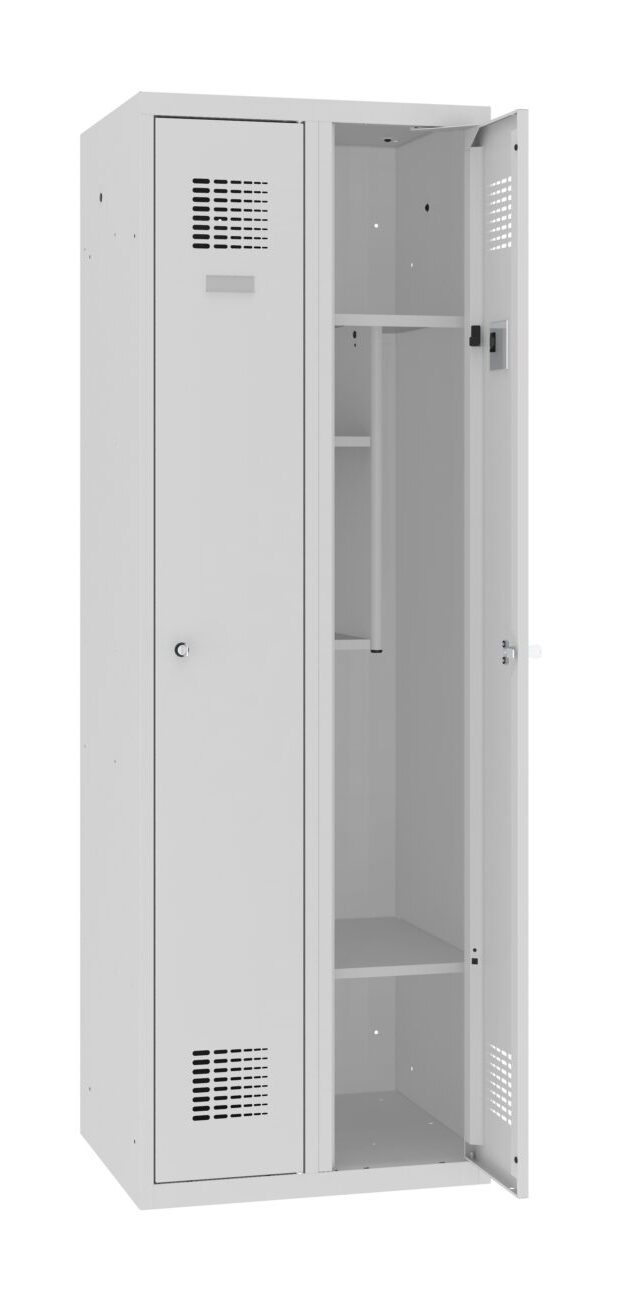 - Komfort podczas przerw - ogranicznik otwarcia drzwi zapewnia komfort podczas kilka szafek jest używanych jednocześnie przez wiele osób. Dostarczany w całości, nie wymaga montażu.