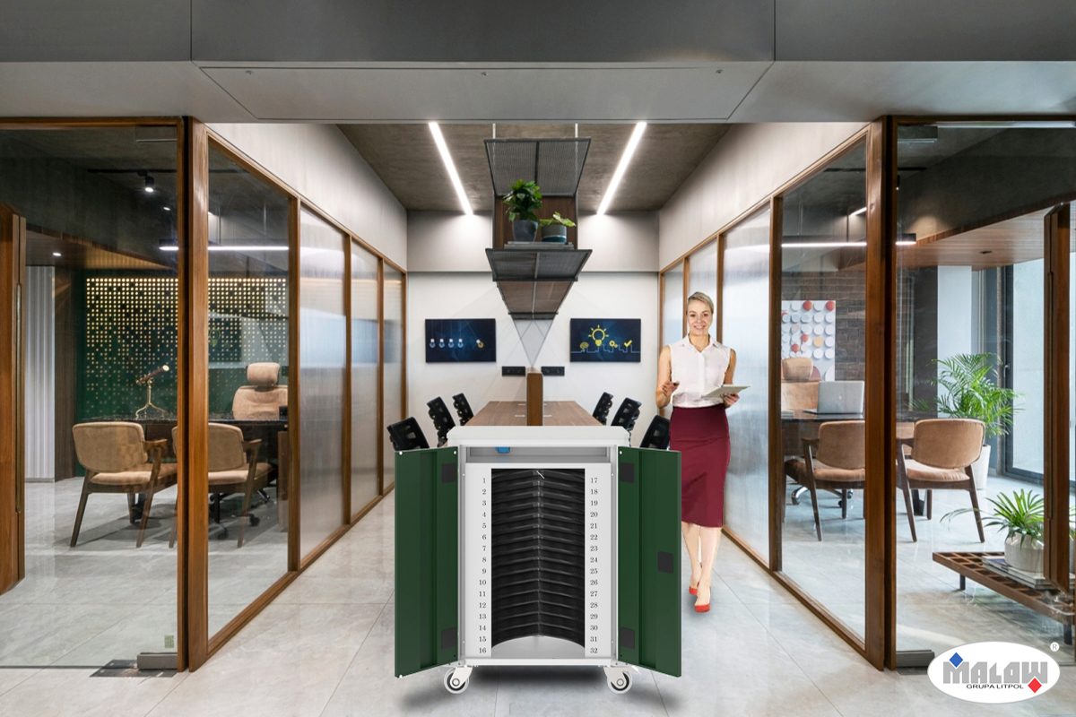 Sprawdza się idealnie w szkołach, na uczelniach, bibliotekach, salach konferencyjnych, czyli wszędzie tam gdzie istnieje konieczność bezpiecznego przechowywania i jednoczesnego ładowania tabletów. Wózek WNT jest szczególnie funkcjonalnym rozwiązaniem w klasach szkolnych, gdzie uczniowie muszą bezpiecznie przechować oraz ładować tablety.