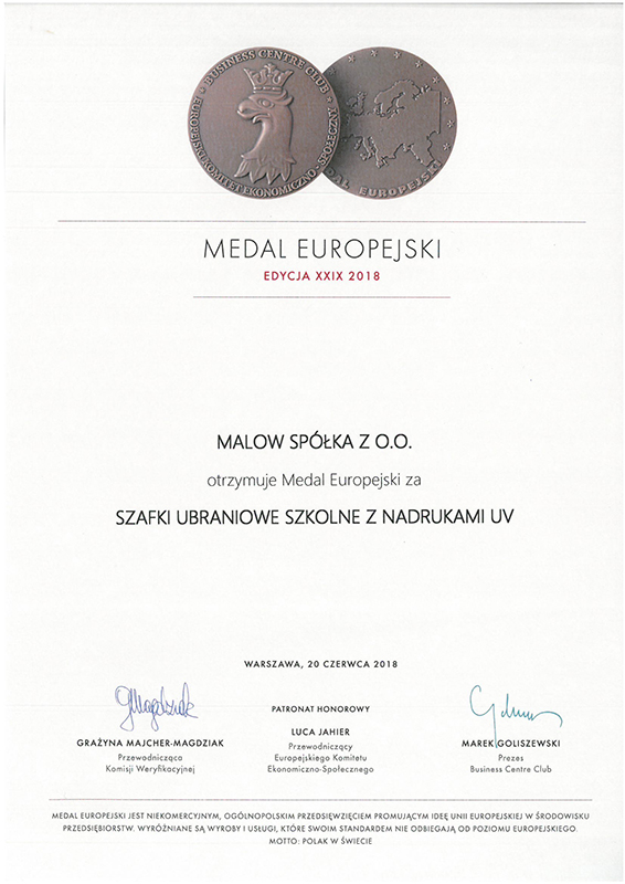 Dyplom za opracowanie osiągnięcia technicznego pt. Szafy ubraniowe z grzaniem i wentylacją Orły Wprost 2017