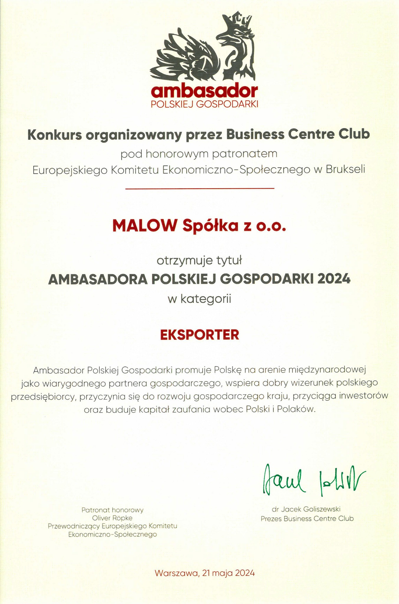 Działania firmy są zauważane i doceniane przez klientów, rynek i instytucje branżowe.